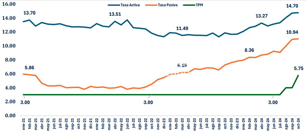 Desde agosto hasta octubre de 2024, los bancos han registrado un aumento de tasas en Honduras sobre nuevas operaciones financieras. Este aumento refleja la subida de la Tasa de Política Monetaria (TPM), impulsada por la necesidad de controlar la inflación nacional. La política monetaria restrictiva busca estabilizar la economía hondureña frente a los efectos de la inflación importada y la depreciación de la moneda. Además, el alza en las tasas de interés está afectando tanto a consumidores como a empresas, reduciendo el acceso al crédito. En respuesta, se espera que los bancos adopten medidas de ajuste para mitigar los efectos en la economía.