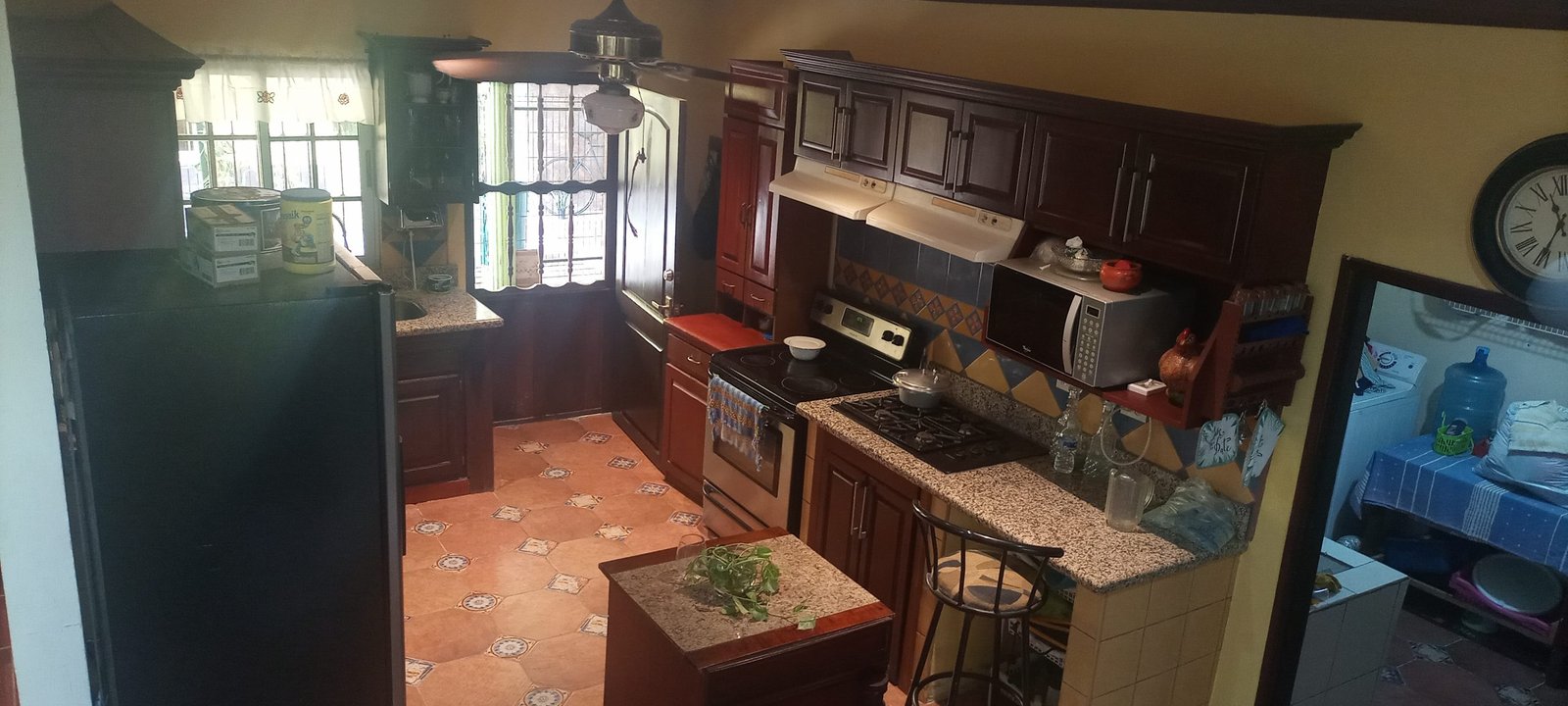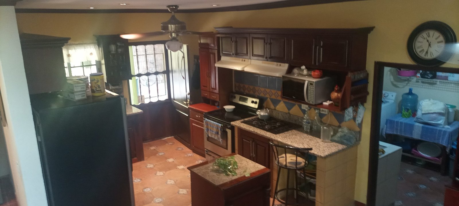 - Toda la casa tiene puertas de madera de color.