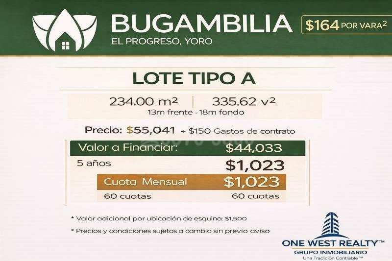 Requisitos mínimos y cuotas accesibles para tu mayor comodidad. Trabajamos de la mano con todas las entidades bancarias a nivel nacional, brindándote las mejores tasas del mercado. Ya sea que residas en el país o en el extranjero, adquirir tu lote en Residencial Bugambilia es más fácil de lo que imaginas.