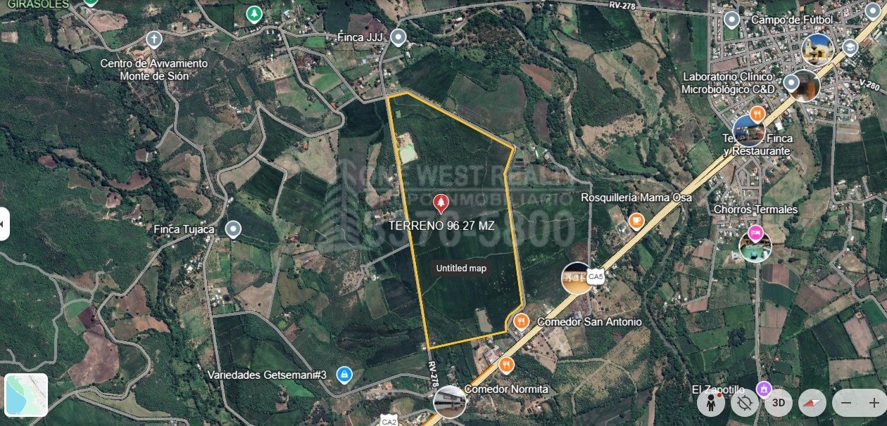 We are pleased to offer for sale an investment land parcel with a total area of 165.869 Acres, 96.27 manzanas (671,247.86 square meters or 962,776.621 varas cuadradas). The property is located in the Villas San Antonio area of Comayagua, just 8 km from Palmerola International Airport, providing it with a high strategic and commercial value.